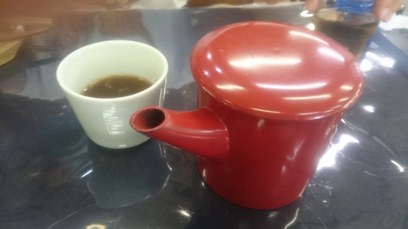 昼は信州蕎麦 (画像は蕎麦湯。蕎麦より蕎麦湯の方が好きです)