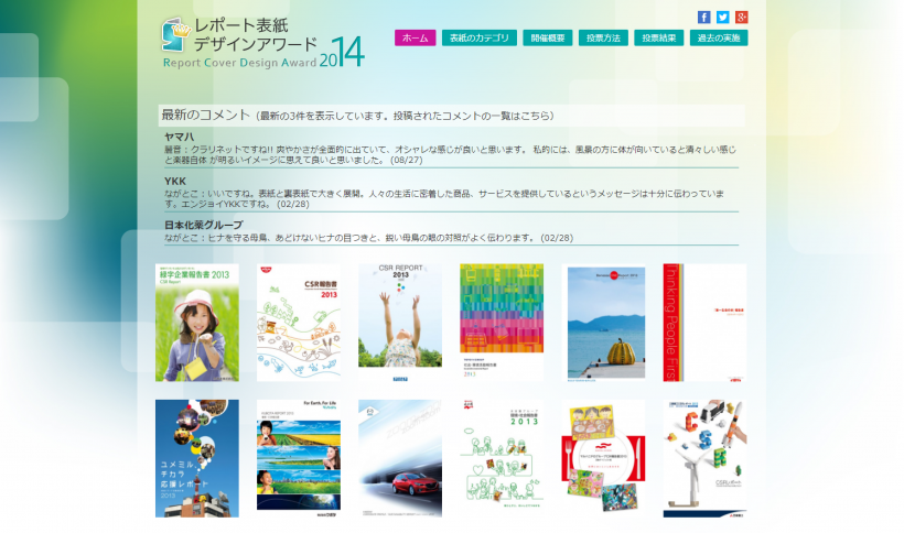 企業が発行する報告書やCSRレポートの表紙デザインを、投票で決めるサイトです。