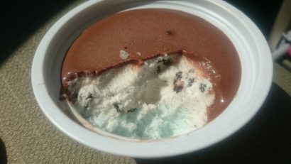 上記Tweetの綺麗な画像を見て頂くとわかる通り、1層目にトロトロのチョコソース、2層目にクッキー入りミントアイス、3層目にシャリシャリのミント氷という3層構造になっています。