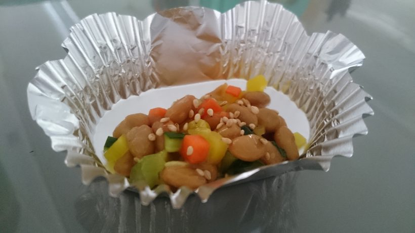 納豆とか野菜とかを細かく切り刻んで混ぜ合わせたものです。