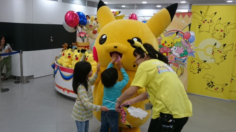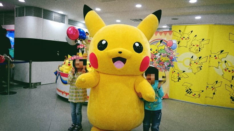 最後にはお約束のピカチューとの記念撮影でご満悦のお子たち。