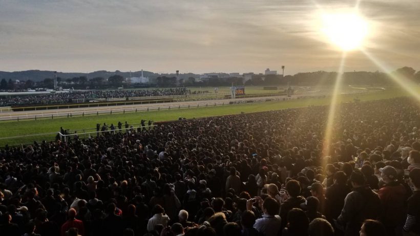 最後にジャパンカップ名物の10万人の大観衆と夕日と東京競馬場。
