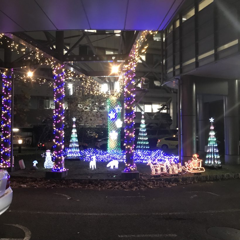 17時からお客様と打ち合わせして外に出ると、真っ暗なあたりをキラキラとイルミネーションが照らしておりました。