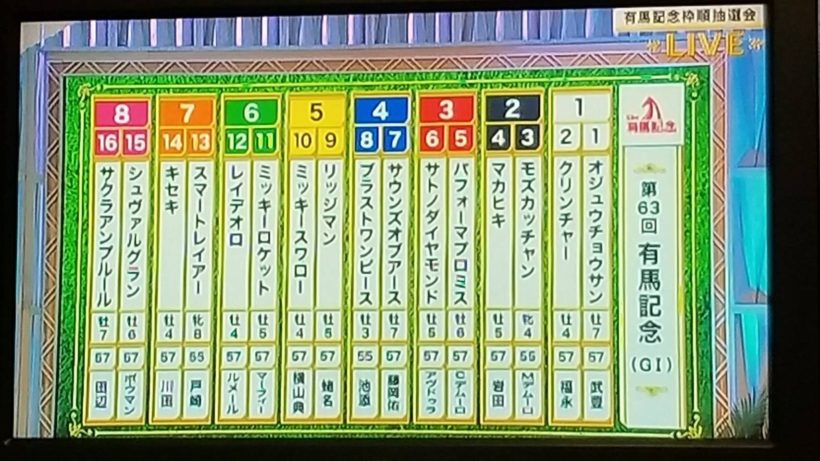 昨日は平成最後の有馬記念の枠順抽選会が品川プリンスホテルで行われ、BSフジでも生中継。