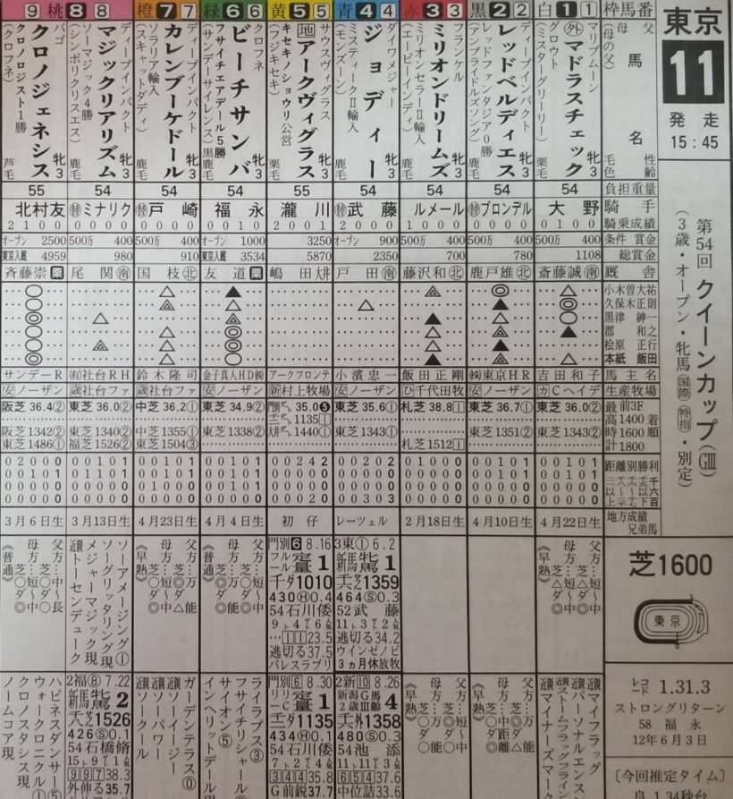 本間の推奨馬は☟