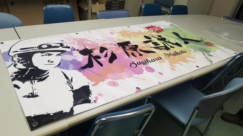 ターポリン生地の印刷に特化した会社のようで、データ入稿からわずか2日ほどで完成。