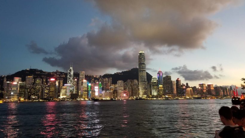 夕暮れの香港。なんか空の感じと都会の光がいい感じで好き。