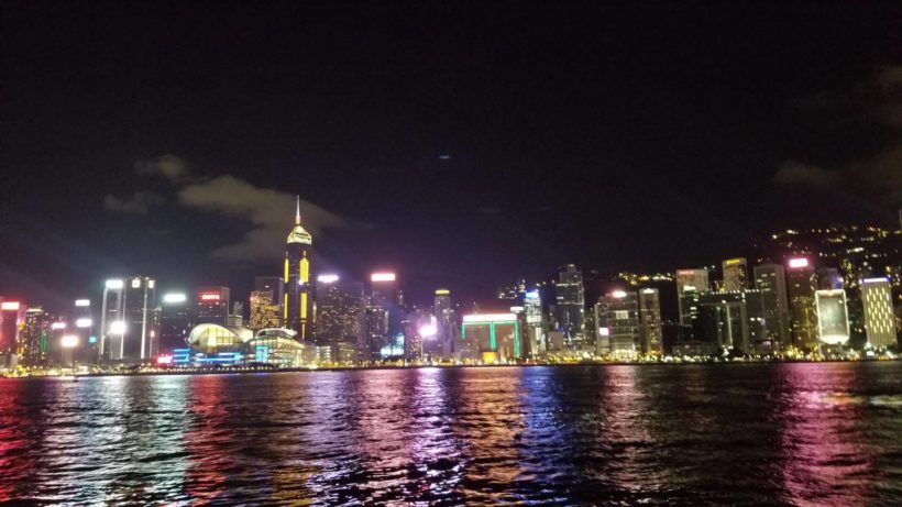 香港の都市が海に面しているので夜景の光が海に反射して、とてもきれいで、幻想的です。