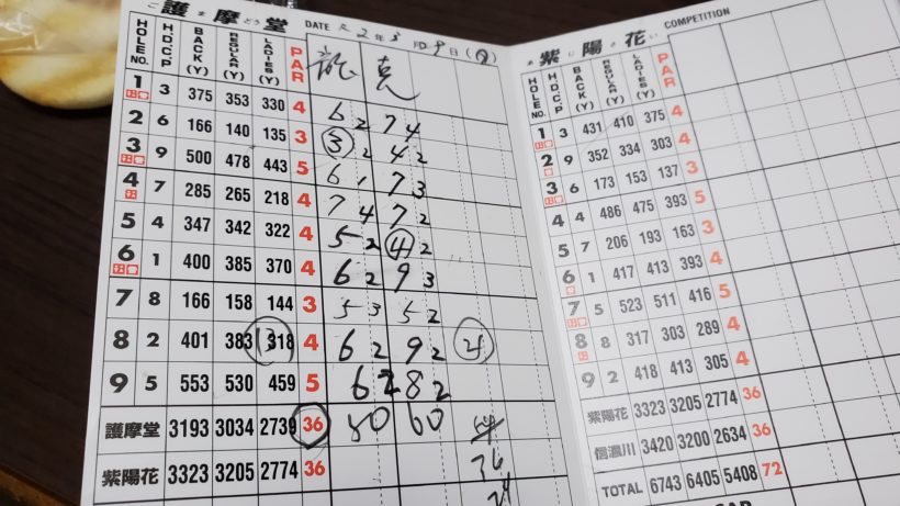 そこから試行錯誤しながらホールを回り、最初は調子よかったのですが後半になるにつれ集中力がきれました。