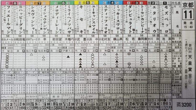 天皇賞(春)というのは競馬でいう長距離レースで3200メートルもの距離を走ります。