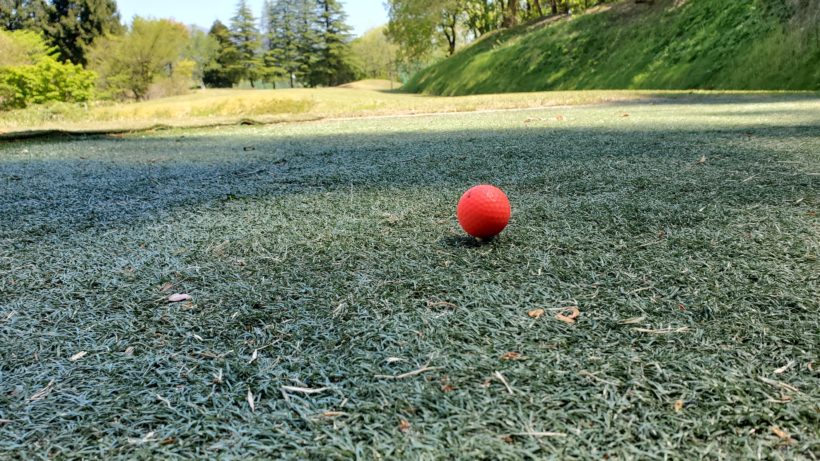 そしてふたつ購入したひとつは1ラウンド目にフェアウェイウッドで林に突っ込み行方不明になりました。