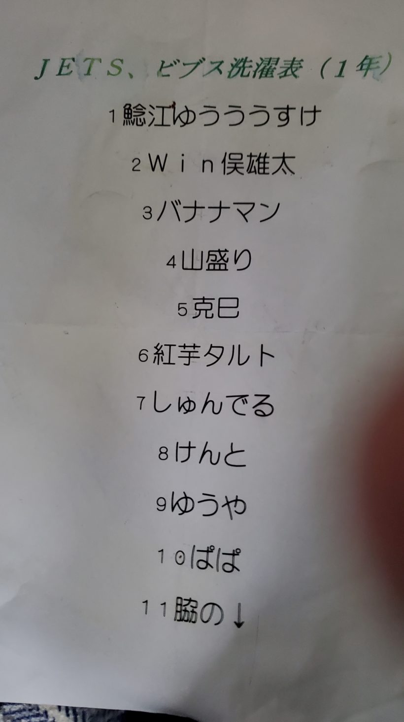 大学のフットサルサークル時代のビブス洗濯の当番表です。