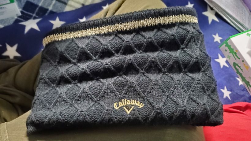 父親にガミガミ言いながらも、このキャロウェイのネックウォーマーはもちろんいただきました。