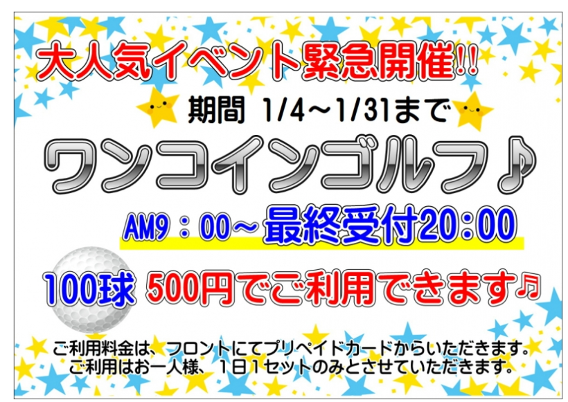 1月31日までの限定企画。この冬に練習をつんで春のラウンドには大成果をあげてやると意気込んでいるゴルファーには最高の企画です。