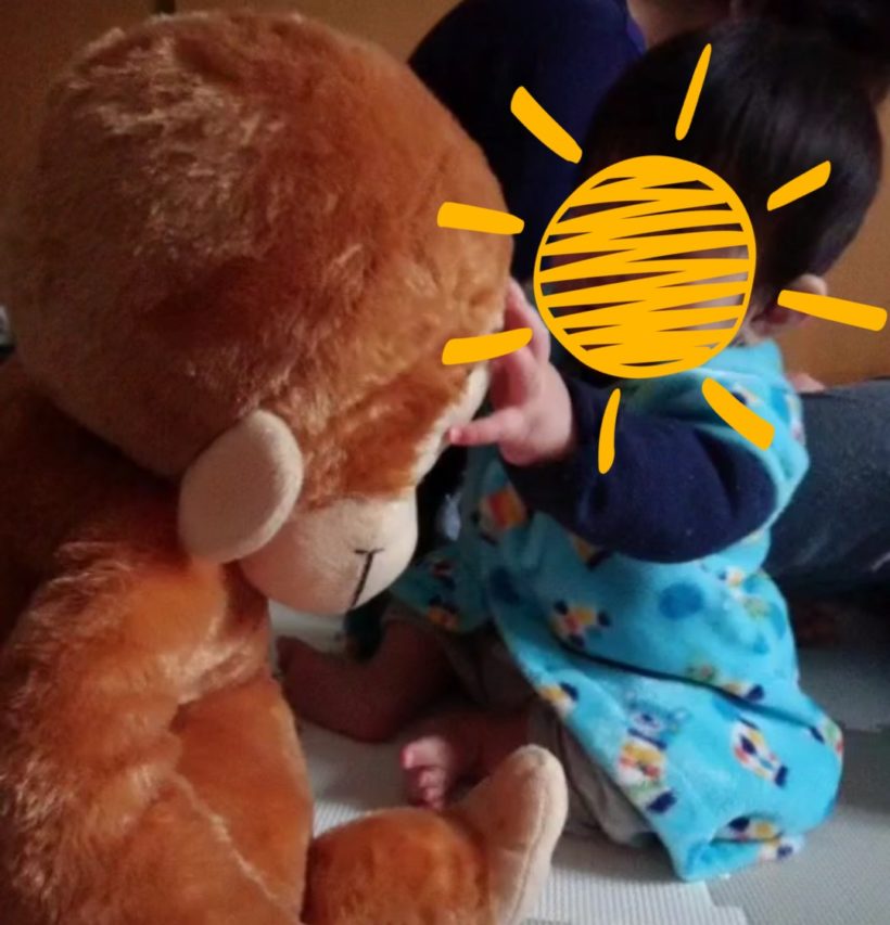 兄の子供がこの前遊びにきたので、UFOキャッチャーで獲得したジョージをプレゼント。
