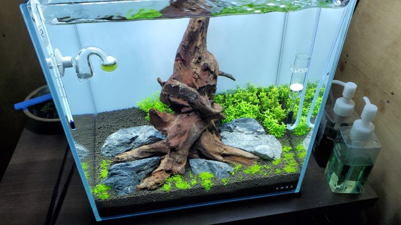 前回、ソイルを敷いて、植栽して注水をしてひたすら水替えの毎日ですが、そろそろ水質も安定してきてるんじゃないかなーなんて思ってます。
