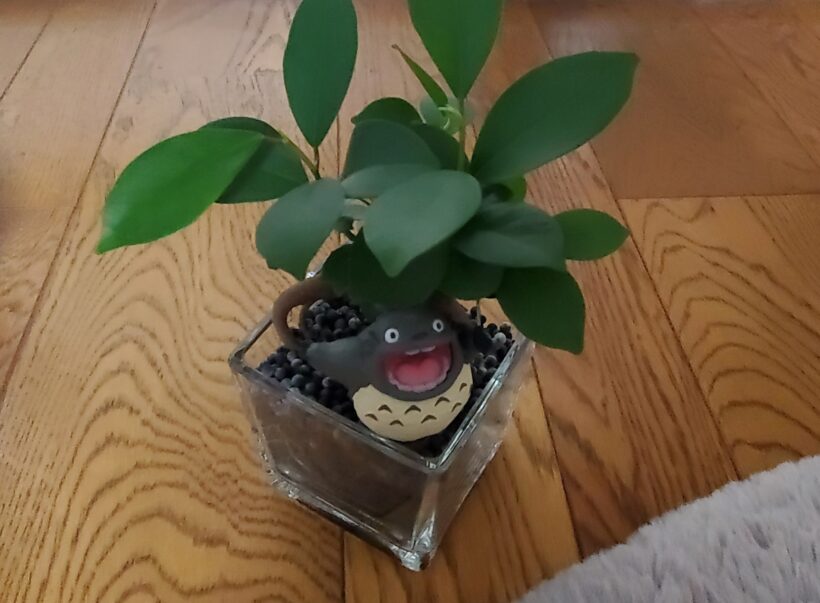 このガジュマル君はテレビの下のスペースに飾らせていただこうと思います。