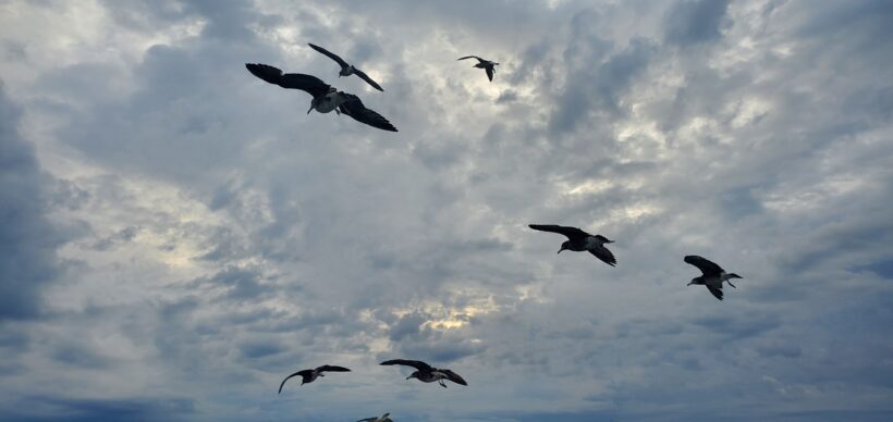 カーフェリーの甲板ではウミネコだちが餌を求めてついてきます。