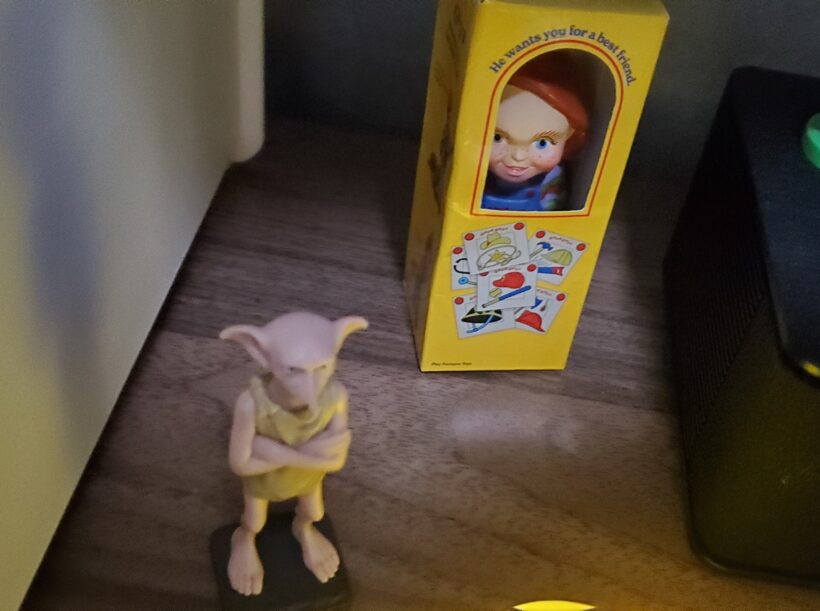洋画で出てるキャラクター、奥は映画「チャイルドプレイ」でおなじみのチャッキー、手前は「ハリーポッター秘密の部屋」から登場するドビーです。