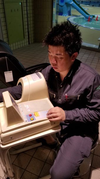 水泳が終わると、外にある血圧計で血圧を測っていました。