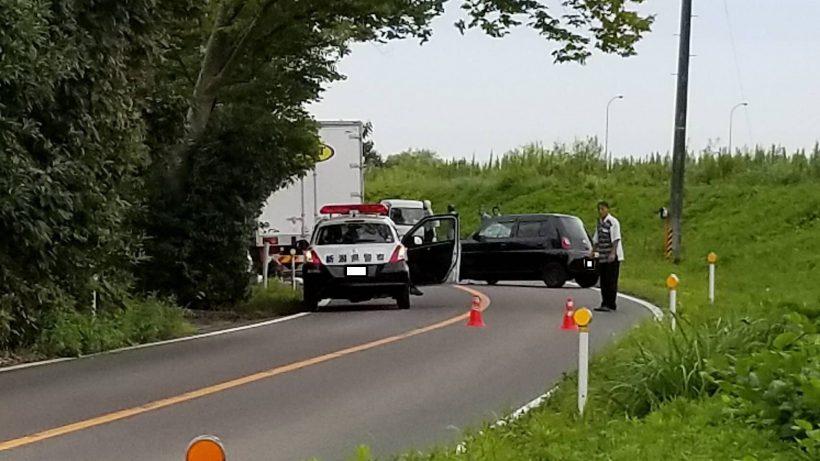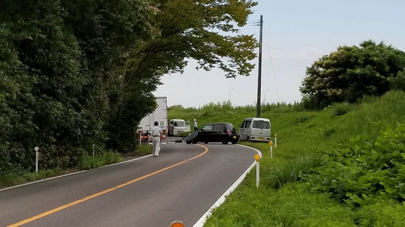話をきくと正面衝突らしい。無事にけが人はいなかったそうだが。