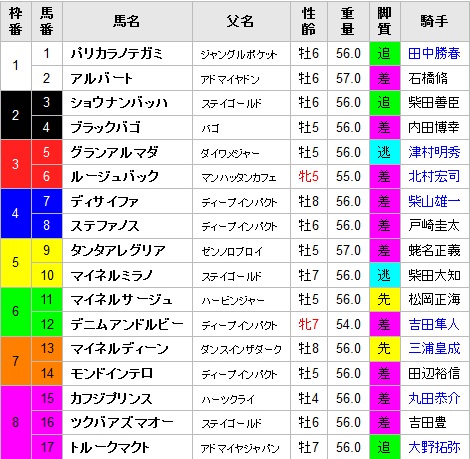 G2オールカマーとG2神戸新聞杯の枠順です。