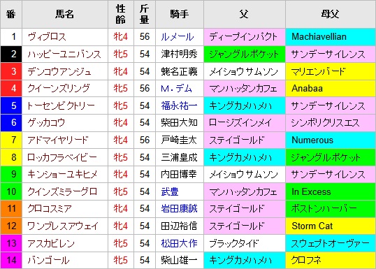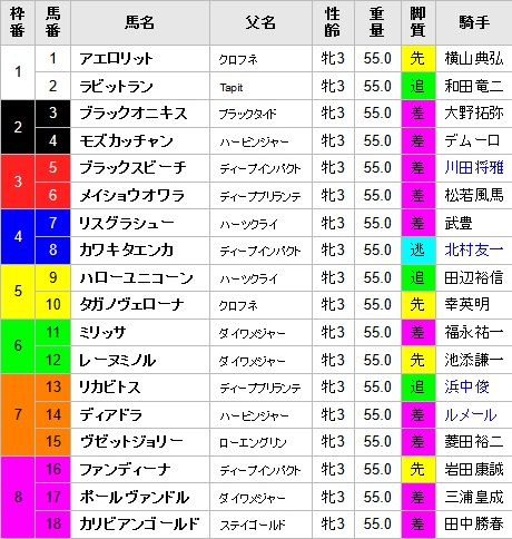 1走前は古馬、牡馬相手にも屈さず、差し切り勝ち。
