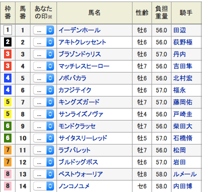 G3根岸ステークスの軸推奨馬は7枠12番のブルドッグボス。