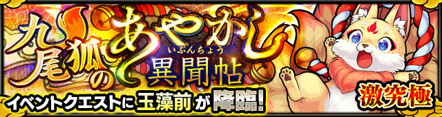 新イベ降臨ラストの激究極クエスト玉藻前が先程まで降臨してました。とりあえずの周回開始。