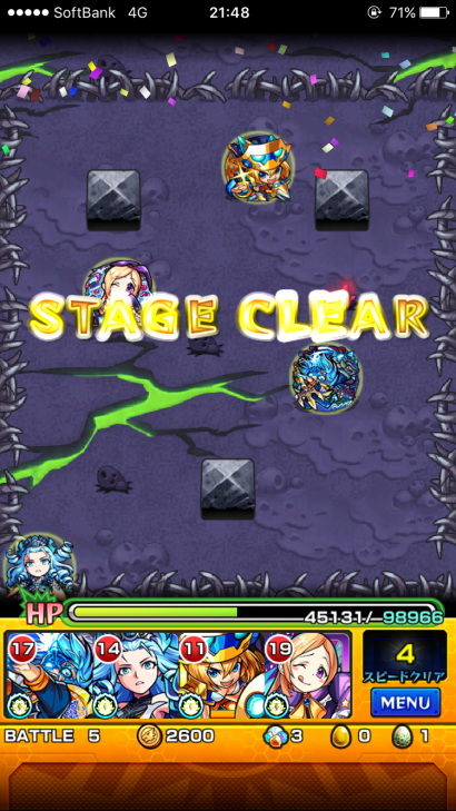 21:00より新イベの激究極ほたねが初降臨していました。ほたねを運極にするとミッション報酬でステッキが貰えるので是が非でも作りたい所。