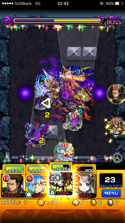 新キャラのルーを連れて行ってみたものの使えたかと言えばイマイチ。個人的には身動き取り易いからレイが便利。弁財天は2週に1回のオールアンチが撃てないターンが歯痒いし…