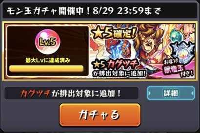 カグツチが対象となるLv.5まで貯めるのがなかなか大変ですが、貯めるだけならやり方は色々とあります。 しかし、大抵の人は我慢出来ずに引いちゃうんですわ(-_-)