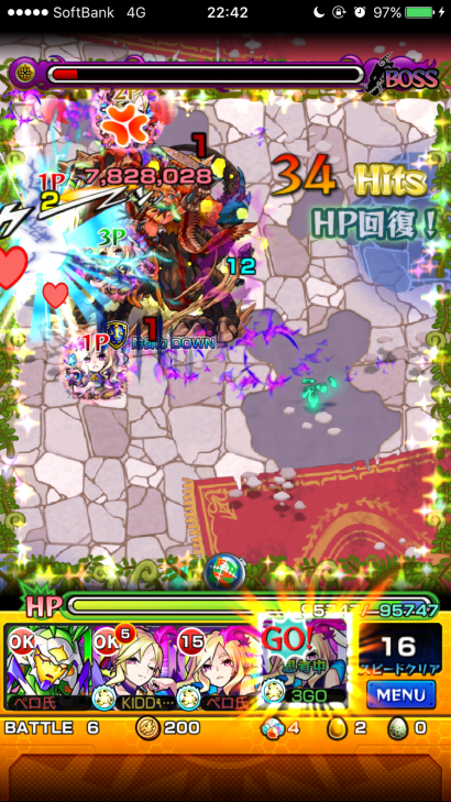 ただし、周回するとなると全く別物な印象。防御力ダウンに毒にと状態異常を随時受けるせいか属性に拘ると周回速度がかなり遅くなります。オマケに状態異常が数ターン継続するのが鬱陶しく感じました。
