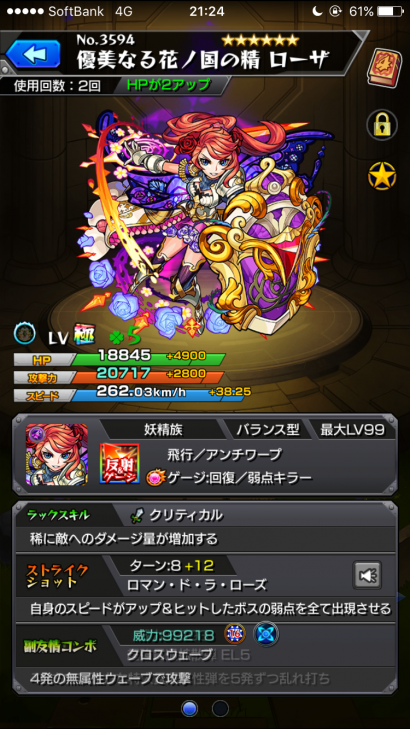 神化ベースでしたね。ステの上がり幅は多少に止まりましたが、ゲージに弱点キラーが追加されました。これは地味に嬉しい(^-^)