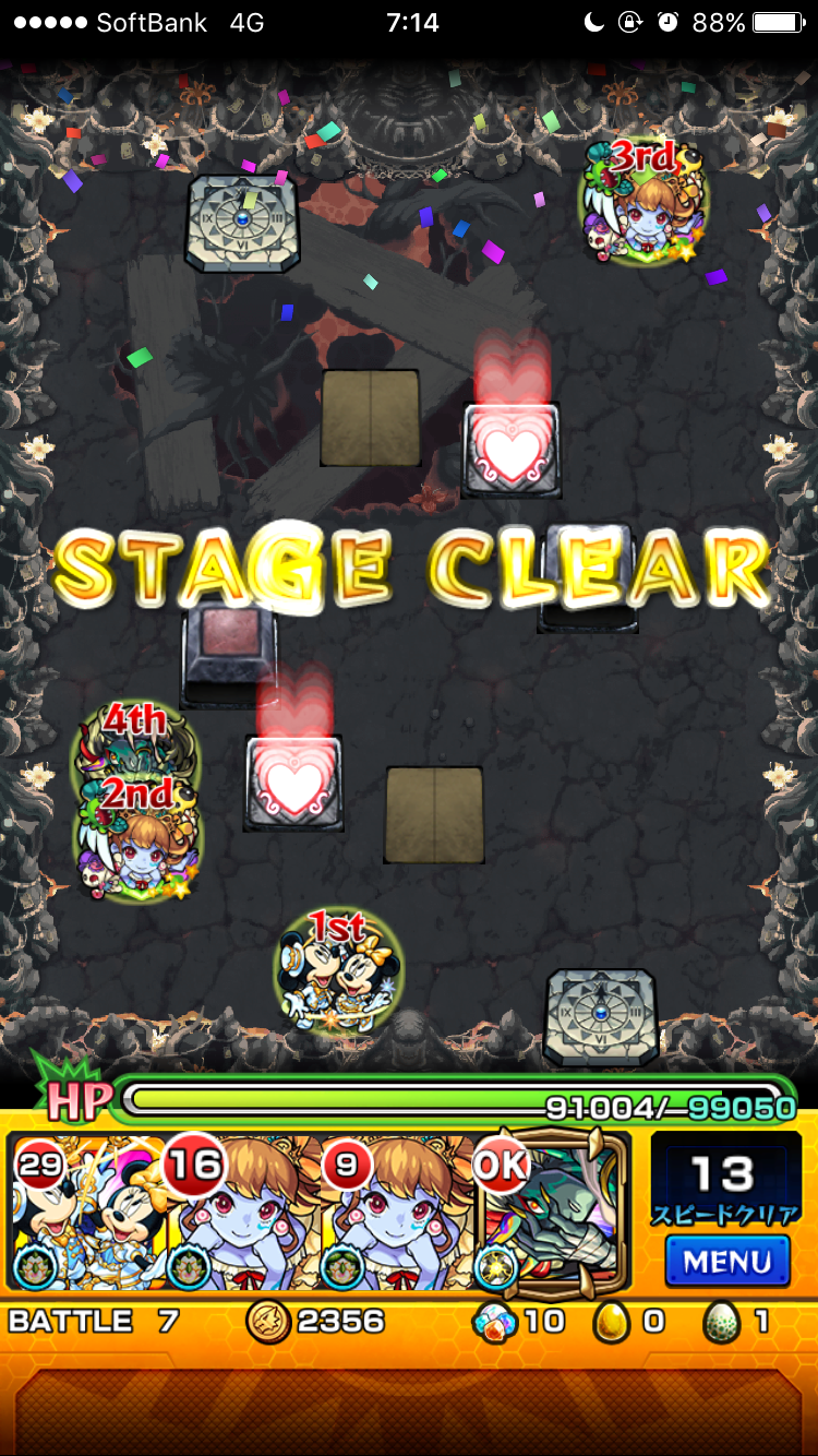 十ノ獄ではミッキーが大活躍(^-^) やっぱ8ターン継続の弱点露出&強化は強過ぎた。次回からもここで使う事になるでしょう。