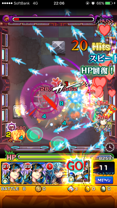 ど適正ミロクを1体でも持ってる方はフレンドからも引っ張って2体入りで周回出来ますね。個人的感想ではあるものの、ミロクは1体でも入ってたらほぼ勝ち確定じゃないかと。