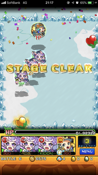 完全初見だったので、お試しも兼ねて早速運極バニア3体でトライ。ギミックには対応してるから何とかなるやろと思ったら割と余裕でした。バニアは素アビで獣Mなので友情のフレイムにもキラーが乗ります。