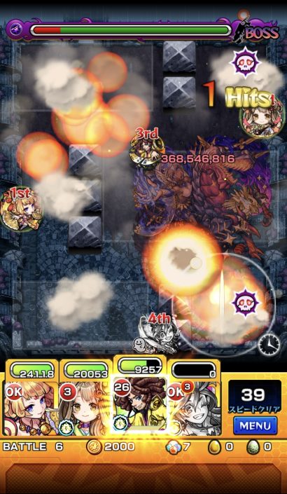 ギミックは言わずもがなワープとブロックです。オマケにHP個別ステージとエレメントエリア内による攻撃力アップ等々で面倒臭い事この上ナシ(-_-) 個人的には轟絶のほうが優しいんじゃないかとさえ思う程です。
