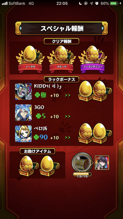 ドゥームの後は爆絶ニギミタマの周回に手を付けてました。予めスポットにて開運のパワーを拾ってあるのでラック90のキャラは実質運極になってくれます(^ ^) ニギミタマはなかなか面白いステージなので好きですが勝率とはまた別の話しw