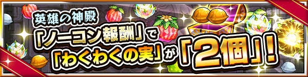 今週は神殿のノーコン報酬2倍です。実を厳選するのが好きな身としては何よりもテンション上がるイベント(゚∀゚) 何なら隔週で来てもらいたいくらい。
