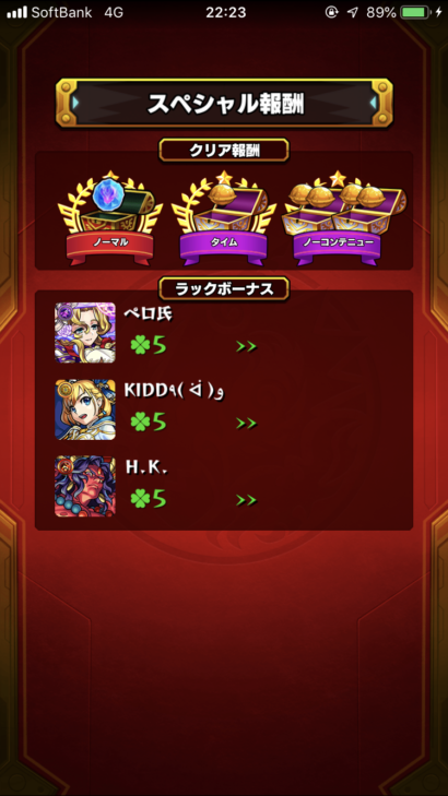 道中ドロップ、金確、タイム報酬、ノーコン報酬で占めて金泥7個٩( ᐛ )و これだから神殿はやめれませんな。ま、厳選は根気も必要なので楽したい人はイベント有効活用して頑張るのもアリですよ。