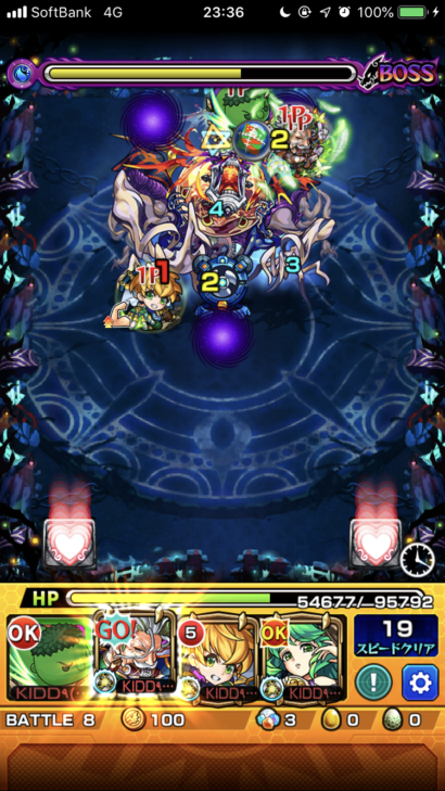 毎回安定のパーティー。ベテルギウスが出てからは一層楽になりました。本当はもう1体居れば更に楽しくなるのですが、1体だけでも完全体に仕上がってさえいれば連れて行く価値はあります。最終は毎回この配置でフィニッシュするのがお決まり。ゲージ満タンでも1本持って行けるので便利(´∀`)
