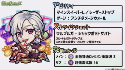 肝心の新友情は全敵貫通ロックオン衝撃波3なるもの。以前の全敵ロックオン衝撃波と火力は変わっていませんが貫通になった点が大変便利。雑魚の多いクエストなんかでボス裏配置が出来ると雑魚目がけて飛んだ衝撃波が全弾ボスに刺さるなんて言う裏当てと呼ばれる技も可能に。単体火力は相変わらず低めなので高攻撃力ならではの直殴りが良いでしょう。