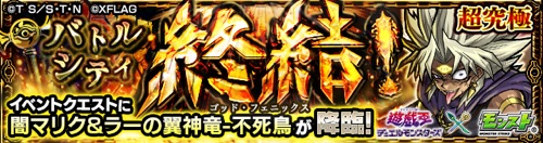 遊戯王コラボも本日の闇マリク&ラーの降臨で出揃いました。ガチャも良いけど運極作ってますか?ダラダラしてるとアッと言う間に開催期間終わりますよ(-.-)y-.,