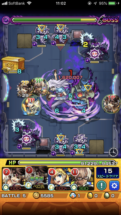 直泥クエなのでドロップを助ける為に今回は黄金櫃なる物が稀に出現します。壊すと1〜3個がランダムでドロップする仕組み。周回効率はこいつの出現率にかかっていますが思った以上に頻繁に出てくれて助かりました。運極になるまでに最大数の3泥は1回しかありませんでしたけどねw