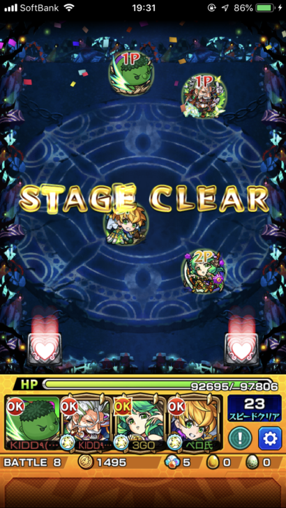 クラーケンとアイスマンのワンパンラインを如何にクリアするかがポイント。言うてベルフェゴール、ベテルギウス、ベディヴィアの3体しかラインに届くキャラは居ないんですけどw その内に難易度を爆下げするキャラが出て来ると思いますが、そこまで気長に待つ気はありません。