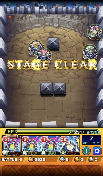 続いて先程まで来ていた通常降臨の更木剣八を周回。どれもチマチマやりたくないので簡単な事もあり運3で周る事に。