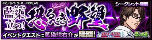 本日正午よりモンストとBLEACHのコラボが始まりました。なかなかに降臨が多いので厄介です。中でもイマイチ不明だったのがシークレット降臨の藍染惣右介。条件が判明するのを待っていたら、突然やって来てビックリ。