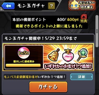 今月もモンパス会員限定のオマケのせいでMAXまで貯める事になったモン玉が本日ようやく上限に達しました。