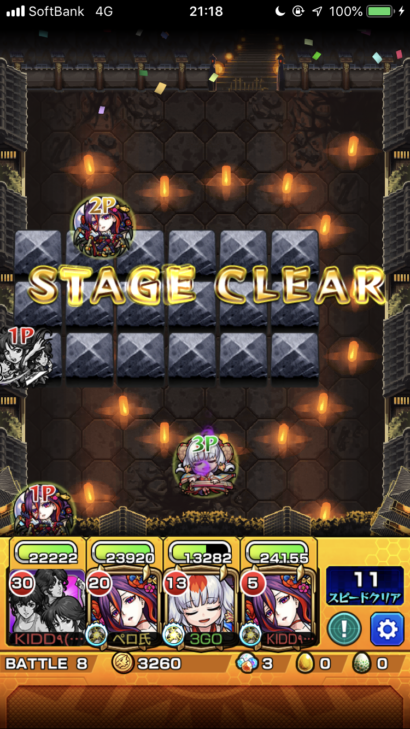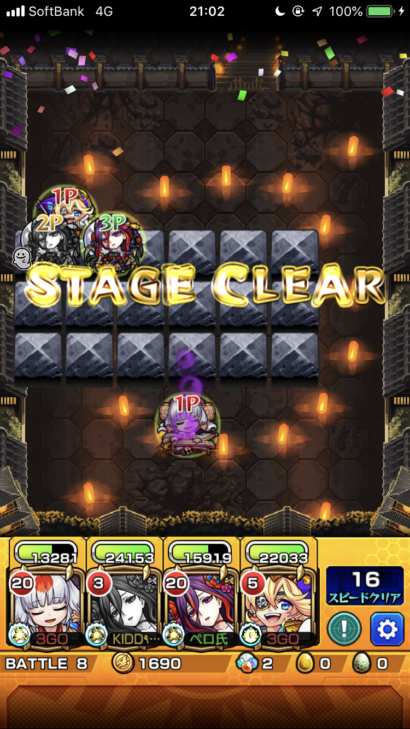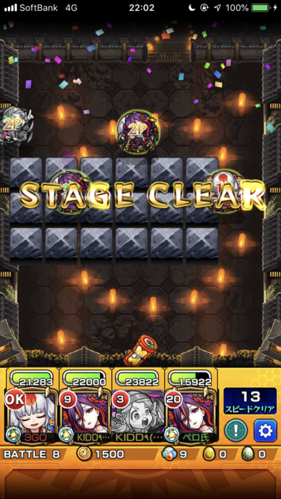 20:00より爆絶クシミタマが降臨していました。嫌いじゃないしスペックも悪くないのでサッサと運極にして使いたいのもあり周回開始。